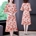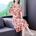 Best 2021 New Spring Summer Women Elegant Dress High Quality Fashion Ruffles Flowers Print Chiffon Dress and You will save 30% or US $17.5 today
