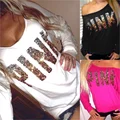 Women Off Shoulder Long Sleeve Loose Sweater Pullover Jumper Tops Loose Blouse