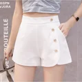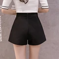 Best Women Summer High Waist Buttons Chiffon Shorts Patchwork Zipper Black White Office Lady Work Wear Female Elegant Shorts Loose and You will save 43% or US $11.91 today