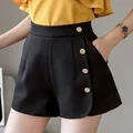 Women Summer High Waist Buttons Chiffon Shorts Patchwork Zipper Black White Office Lady Work Wear Female Elegant Shorts Loose